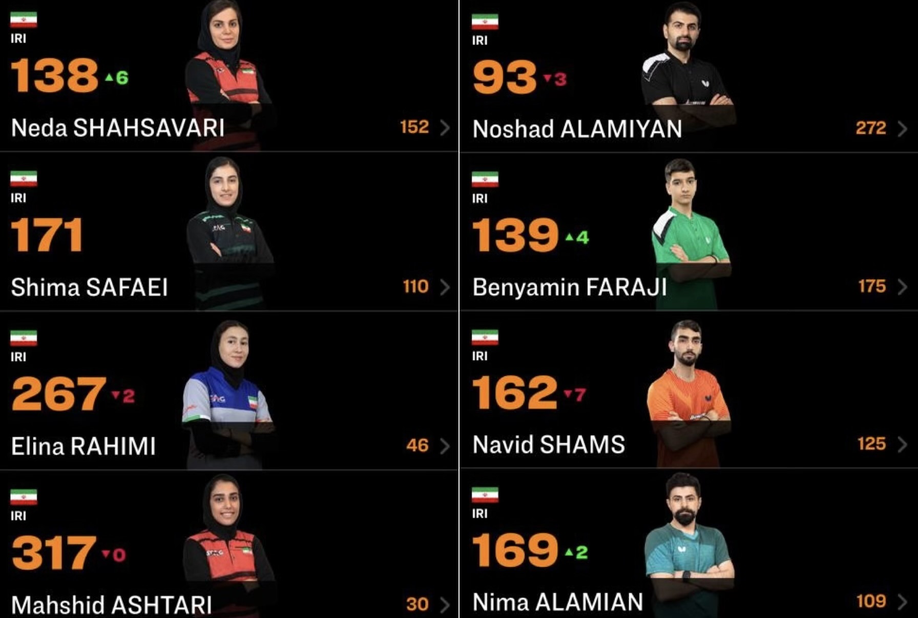 رنکینگ المپین های تنیس روی میز ایران پس از المپیک ۲۰۲۴ پاریس منتشر شد و هر سه المپین ایران صعودی چشمگیر داشتند.