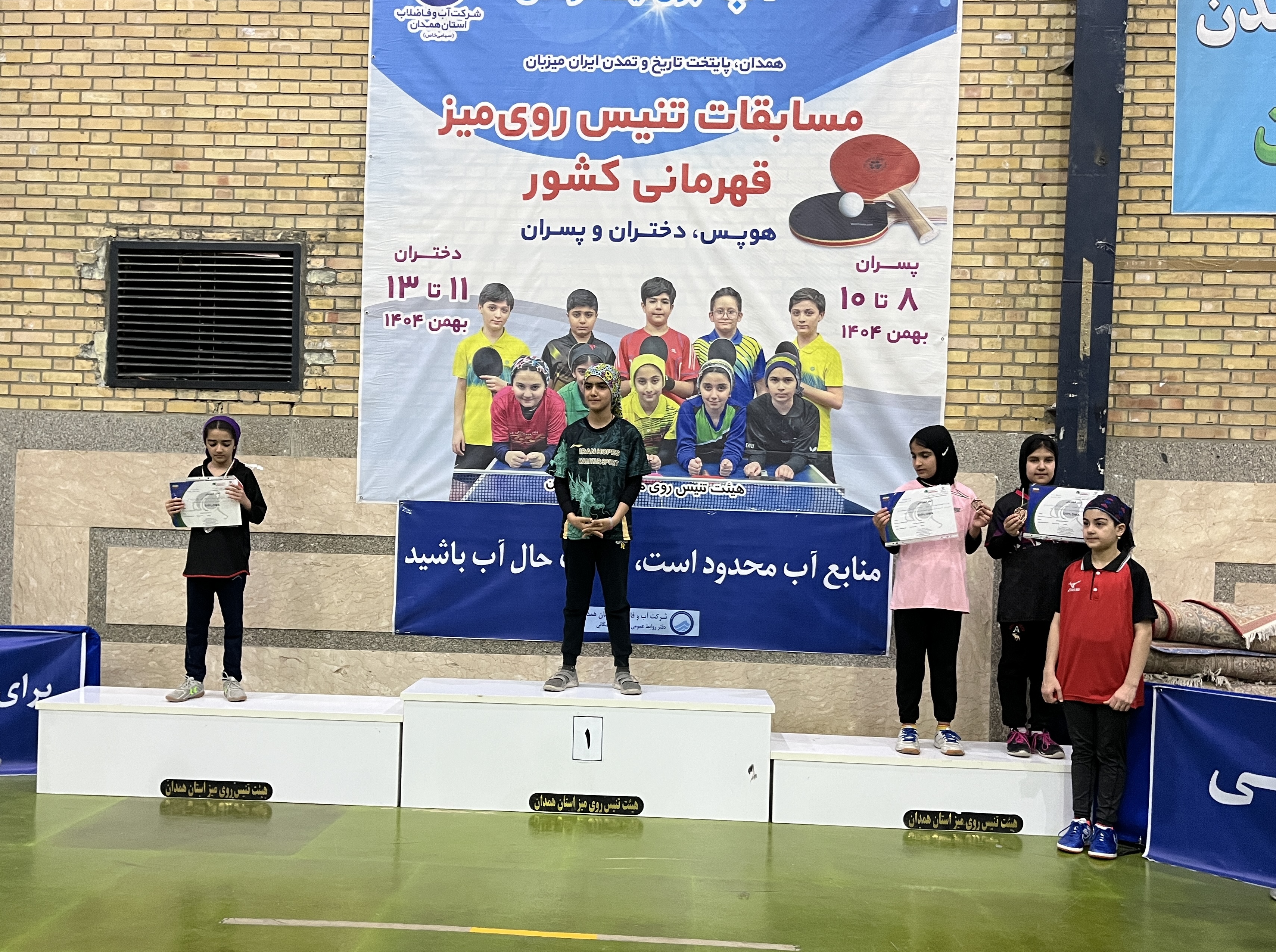مسابقات تنيس روى ميز هوپس دختران متولدین ۹۳ به بعد کشور با قهرمانى دیانا فلاح از تهران از تهران خاتمه يافت.